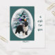 Spaanse Waterhond staat trots tegen de achtergrond van een versierde boom in het bos in deze unieke en mooie kerstkunst. Geweldige kerstcadeaus om jarenlang te koesteren.