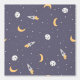 Schattige en grappig ruimteontwerp met kleurrijke manen, raketten, planeten en sterren op een blauw paarse achtergrond. Perfect voor een jongenskamer, kinderkamer of een speelkamer.