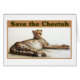 Een schilderij van een terugkerende cheetah met de woorden Save the Cheetah erboven. Show je liefde voor de cheeths