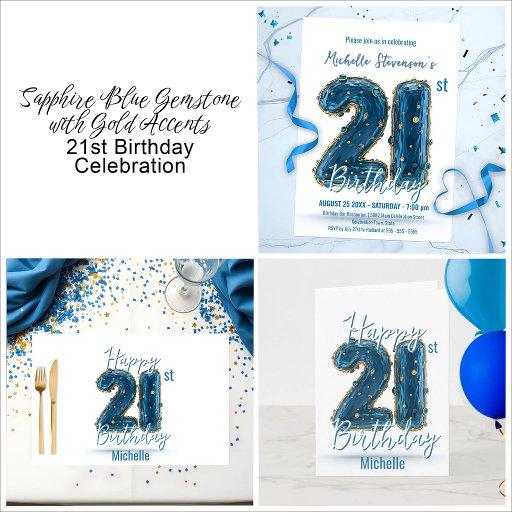 Sapphire Blue Gemstone and Gold 21st Birthday Ontworpen door Kristina Lj Petrovska