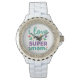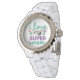 Sparkling Diamond Bezel Super Mom White Link Watch Horloge