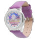 Dit is een horloge waar elk klein meisje van zou houden! Het beschikt over een fonkelend roze opfokende eenhoorn afbeelding tegen een abstracte blauw, paarse, roze en geel gestreepte iriserende stijl achtergrond. Haar naam is in het wit linksonder. De blauwe cijfers op de buitenste bleke roze rand maken het horloge gemakkelijk af te lezen. Dit ontwerp ziet er geweldig uit met verschillende polsbandkleuren, ook...bekijk ze!