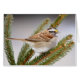 Een witte troebele mug die in de winter op een dennenboom zat. In Pleasant Valley, NY.
