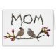 Twee goudgekroonde mussen zitten op een kersentakje en wensen mama een vrolijke Moederdag op deze lieve kaart.
