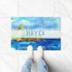 Blue Beach Coastal Ocean and rock Doormat met een prachtige strandachtergrond en de familienaam. Ideaal voor een strand front home of als cadeau voor vrienden en familie die een levende oceaan voorstaan.