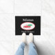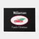Welkom uw familie en gasten bij de kerst thuis met deze feestelijke zwarte deur. Het is versierd met een waterverf ontwerp van een kleine rode vrachtwagen die de kerstboom met een ster bovenaan naar huis brengt. Pas deze deurmat aan door de naam in uw eigen naam te veranderen. Oorspronkelijke Waterverf © Michele Davies.