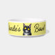 Leuke zwarte kitty kat met grote gele ogen gepersonaliseerde kat voerbak.