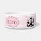 Luchters op een roze achtergrond op deze speciaal roze zwarte Roze Dog Pet Bowl. Ideaal voor vrouw dierenhonden.