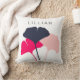 Creëer een gepersonaliseerd kussen wanneer u een naam of ander bericht toevoegt in marineblauwe letters in een eenvoudig, schoon lettertype. Maak een statement met gedurfde kleuren en een duidelijke en eenvoudige afbeelding. Kenmerken illustraties van ginkgo bladeren in marineblauw, licht blush roze en een heldere koraal getinte magenta.