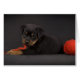 rottweiler van 1 , 5 maanden oude puppy speelt met rode garen .