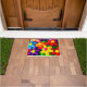 Een bundel opblaasbare speelgoed ballonnen gevormd als bloemen van verschillende kleuren. Vrolijk vakantie! Wees blij! Prints en cadeaus voor iedereen voor plezier en goed gehumeur. Horizontale of landschapsgeoriënteerde producten en souvenirs.