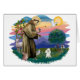 De patroonheilige van dieren en een geliefde figuur die denominationele grenzen overschrijdt, wordt St. Franciscus hier getoond met een Speelgoed witte poedel. De figuur van Sint Franciscus zelf werd aangepast van Giotto's 14e-eeuwse meesterwerk en een nieuwe achtergrond werd gecreëerd door Jean Fitzgerald