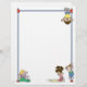 Dit briefhoofd bevat kinderen die op aap bars spelen, die een glijdende plank omlaag gaan en hopschotel spelen.