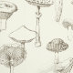 Naadloos patroon met botanische illustraties van verschillende soorten bospaddenstoelen, in monochroom beige witte tinten op een gebroken witte achtergrond voor boskern, fairycore, goblincore, cottagecore esthetiek liefhebber, voor kinderkamer, kinderkamer, keuken, badkamer