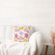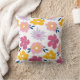 Een prachtig patroon met kleurrijke bloesems in tinten van roze, geel en lavendel. De bloemen zijn geaccentueerd met marinebladeren en ingewikkelde details, waardoor een harmonieus en vrolijk ontwerp tegen een witte achtergrond ontstaat.