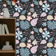Doordrenk uw huis met warmte en karakter met ons betoverende peel-and-stick behang! De grafische stijl is een heerlijke mix van moderne grillen en klassieke elegantie. Tegen een diepe houtskool achtergrond bloeien gestileerde bloemen in tinten roze, blauw, blauwgroen en crème. De bladeren vertonen ingewikkelde patronen - sommige met stippen, anderen met fijn lijnwerk. Deze voegen textuur en diepte toe aan het algehele ontwerp. Vergeet niet dat dit peel-and-stick behang meer is dan decoratie - het is een uitdrukking van uw unieke stijl!