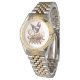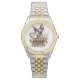 Sphynx Cat Mom zilveren en gouden tweekleurig horloge voor Moederdag of een speciale gelegenheid. Een exclusief 'Sphynx Cat Art' design horloge combineert de luxe van goud met de klassieke aantrekkingskracht van zilver, het creëren van een unieke, sieraden accessoire dat een speciale Sphynx kat moeder viert.