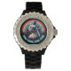 Sphynx Kattenhorloge met strass. De Sphynx Cat is een realistische Sphynx-kat met een levendige regenboog en een achtergrond in hartenontwerp, met het grappige gezegde "Too Cool For Fur!" Personaliseer het door een foto te uploaden naar creëer uw eigen aangepaste Sphynx Cat horloge!