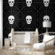 Een dramatisch gotisch gestileerde vectorgetekende grafische schedel en spiderweb. Met de opties voor sjabloon kunt u de achtergrondkleur wijzigen, tekst toevoegen en de illustratie filteren.