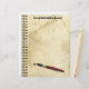 Hier is een echt leuk briefpapier. De blik van een oud spiraalverbindend dagboek. De pagina ziet er gekleurd uit alsof het rond de wereld is met je. Een inktpen onderaan met een inktvlek. De tekst heeft de blik van gedragen type. Dit briefpapier zal het leuk maken om brieven te schrijven.