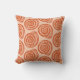 Gooi het kussen in een blokdrukpatroon, gebaseerd op een spiraalvormige schelp, in diep koraal sinaasappel op een pastel koraal sinaasappel / abrikoos achtergrond
