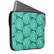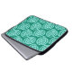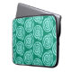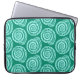 Laptophoes in een blokafdrukpatroon op basis van een spiraalvormige zegel in pastelaqua op een achtergrond van turquoise / peace-ock