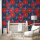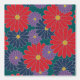 Grote rode, middelmatige jachtblauw en kleine royal paarse daisy-achtige bloemen zijn verspreid over een rijke groene achtergrond van het oerwoud, zodat creëer een kleurrijk floreel patroon kan worden gevonden dat zelfs in de herfst perfect is.