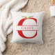 Christmas Monogram Letter A Deer Antlers Festive Throw Pillow is a two-sided design. The split monogram letter C, decorated with deer antlers and a flower wreath is on the front. There is a text field you can customize with your name. The back is a red and white stripe pattern