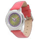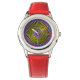 Dit horlogegezicht is ontworpen om je de illusie van beweging te geven. De kleuren zijn in hoog contrast en zien eruit alsof het gezicht draait. Alle kleuren zijn metalen (goud, rood, blauw en violet) op een zwart veld. Er zijn geen uren op het gezicht gemarkeerd. Beschikbaar in alle stijlen en kleuren.