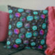 Dit griezelige Halloween kussen heeft een leuk kleurrijk patroon met kleurrijke turquoise en paarse monsteroogbollen en pompoenen doodles op een zwarte nachtachtergrond. Het zal kinderen en vrienden verrukken die dol zijn op een speelse seizoensschets, een spookachtig geïllustreerd oktoberontwerp dat ideaal is voor herfst-feesten.