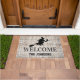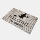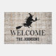 Spooky Black Witch Halloween Doormat is uitgerust met een heks die op haar bruin vliegt met een kat, welkomstbord en familienaam sjabloon op wol geweven Burlap.Een perfect ontwerp voor Halloween.Klik op een persoonlijke knop om deze aan te passen met uw eigen tekst of familienaam.
