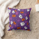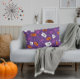 A cute hand drawn illustration of festive blend of ghosts and pumpkins on a vibrant purple background, evoking a playful Halloween spirit.