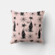 Mijn originele vectorillustratie van strakke zwarte retro katten, spinnenwebben en spinnen, in zwart, gebroken wit en grijs, op een roze achtergrond, met een gesimuleerde weefseltextuur. ©️Christine Duffield