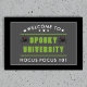 Omarm de geest van Halloween met deze gepersonaliseerde welkomstmat met trendy collegiale stijl tekst die zegt, "Spooky University" en "Hocus Pocus 101," plus twee griezelige zwarte weduwe spinnen. Dit ontwerp voegt een persoonlijke touch toe aan uw Halloween-decor. Wijzig de drie tekstgebieden om een unieke deurmat te creëer om vrienden, familie en trick-or-treaters in stijl te begroeten. Of u nu een spookhuis feest organiseert of gewoon een feestelijke touch aan uw entree wilt toevoegen, deze aanpasbare deurmat is de perfecte keuze voor het etaleren van uw Halloween-geest.