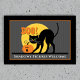 Welkom gasten en trick-or-treaters met deze aanpasbare Halloween deurmat. Met een griezelige zwarte kat met doordringende groene ogen, een gloeiende volle maan, een schattige uitgesneden pompoen en aanpasbare typografie die zegt: "Shadowy Figures Welcome", is deze deurmat perfect voor het toevoegen van een persoonlijke touch aan uw Halloween-decor. Voeg een naam of je eigen tekst toe aan creëer een unieke deurmat om vrienden, familie en trick-or-treaters in stijl te begroeten.