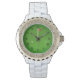 Sportief dameshorloge met golfbal, gat en vlag op groene achtergrond. Geweldig op maat geschenk idee voor een scherpe golfer of golfen fan