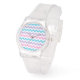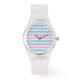 Een en sportief polshorloge, met een pinstrap en een chevron in Turquoise Blue, Snoep Pink, Licht Paarse en Wit.