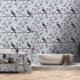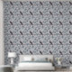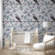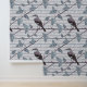 Dit behang heeft een patroon van een vogel die op de tak van een boom staat.