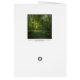 Een groetings kaart met een aantrekkelijk midden uitgelijnd vierkant Instagram stijlfoto van de bossen in Bute Park, Cardiff, Wales, met de levendige groene bladeren van de lente. Een kleinere herhaling van het afbeelding op de achterkant, samen met titel en fotograaf/kunstenaar, enz. Deze kaart kan ook worden aangepast.