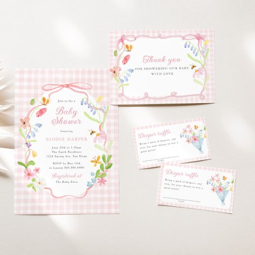 Spring Floral Pink Gingham Baby ShowerOntworpen door MOONDAISY STUDIO