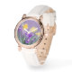 A soft moment of spring you can carry everywhere. This dreamy watch features delicate yellow and purple blossoms against a gentle lavender background, creating a peaceful mood full of warmth and quiet joy.