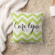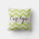 Maatwerkkussen met veergroen en beige chevron-patroon met zwarte moderne kalligrafie. Dit stijlvolle kussen zal perfect zijn als een geschenk of als een kleurrijk accent voor elke kamer.