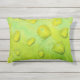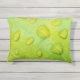 Dit Outdoor / Indoor Accent Pillow is voorzien van een originele, abstracte foto van ZoeSPEAK van regendruppels op een blad. Op de close-upfoto zien we de textuur en aderen van het blad vergroot in de contouren van de waterdruppels. Het glanzende gele groene blad reflecteert het blauw en geel van de lucht en het zonlicht.