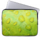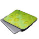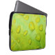 Deze 13-inch laptophoes is voorzien van een originele abstracte foto van ZoeSPEAK van regendruppels op een blad. Op de close-upfoto zien we de textuur en aderen van het blad vergroot in de contouren van de waterdruppels. Het glanzende gele groene blad reflecteert het blauw en geel van de lucht en het zonlicht.