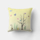Dit mooie gooi kussen creëer is een kleurrijke, grillige lente stemming. Vogels vliegen en worden in de boom neergestreken. Vlinders zweven in de warme lucht. Een eend waggelt in het gras. Een bruin konijn kijkt aan. Er is zelfs een kleine slak op de grond. De scène is ingesteld op een bleke gele gradiënt achtergrond. Het afbeelding wordt op de rug herhaald.