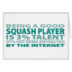 Het zijn van een Goede Speler van de Squash is 3% Talent en 97% die niet door Internet worden verstoord. Als Squash je hobby, beroep of obsessie is, show het dan met geweldige Squash t-shirts, mokken, stickers en nog veel meer. Het zijn ook geweldige cadeautjes voor andere Squash-fans!