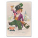 Een 1920's-30's Sint Patrick's Day briefkaart illustratie van een schattige jongen met een hoge hoed en staarten en lomp met een glas en een fles champagne. Er zijn shamrocken op zijn pet en in de mond van een klein speelgoed varken. Veel geluk met deze!