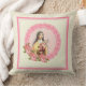 Het mooie afbeelding van St. Therese de Kleine Bloem met Rozen Roze Roze kant omringt haar met de witte achtergrond op de kussen.