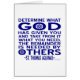 In Democraat blauw, de woorden van St. Thomas Aquinas: "Bepaal wat God je gegeven heeft en neem er wat je nodig hebt van, de rest is nodig door anderen." Ontwerp beïnvloed door Christelijk links.