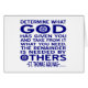 In Democraat blauw, de woorden van St. Thomas Aquinas: "Bepaal wat God je gegeven heeft en neem er wat je nodig hebt van, de rest is nodig door anderen." Ontwerp beïnvloed door Christelijk links.